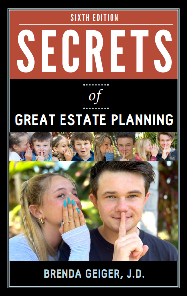 “Estate planning attorney Brenda Geiger’s new book- Secrets of Great Estate Planning, Sixth Edition – is a “must have” for anyone planning to do effective estate or trust planning. Parents and grandparents alike will find this easy to read resource makes the process of doing a will, trust, power of attorney and the related planning way less stressful and complicated. So if you’ve been putting off estate planning but want, and NEED, to get it done as painlessly and effectively as possible, then get this book…right now!”